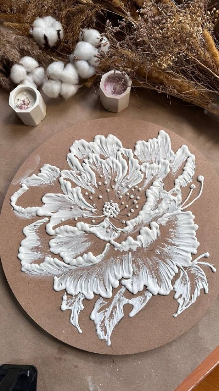 ✔ Готовая фактурная картина с ажурным пионом